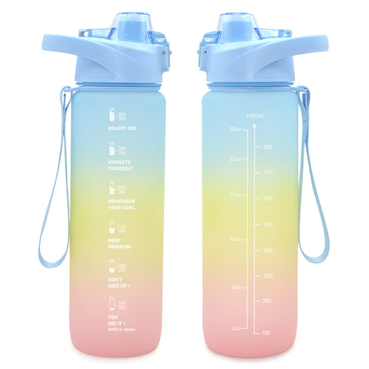 Products Description: Product name:Gradient Color Motivation Sports Water Bottle Material:PLastic Capacity:1000ML,740ML Packing: Carton Boxes Applicable...