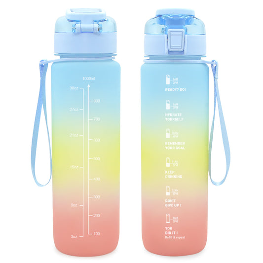 Products Description: Product name:Motivational Water Bottle with Time Marker Material:Plastic Capacity:1L Packing: Carton Boxes Applicable...