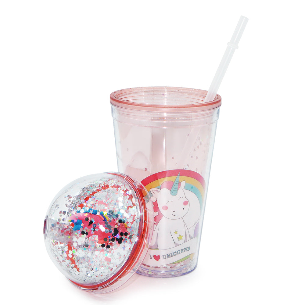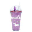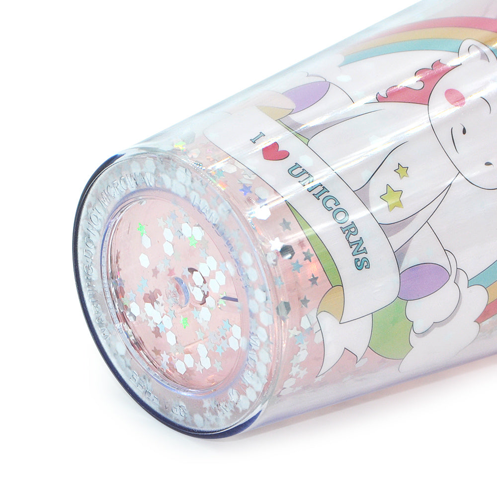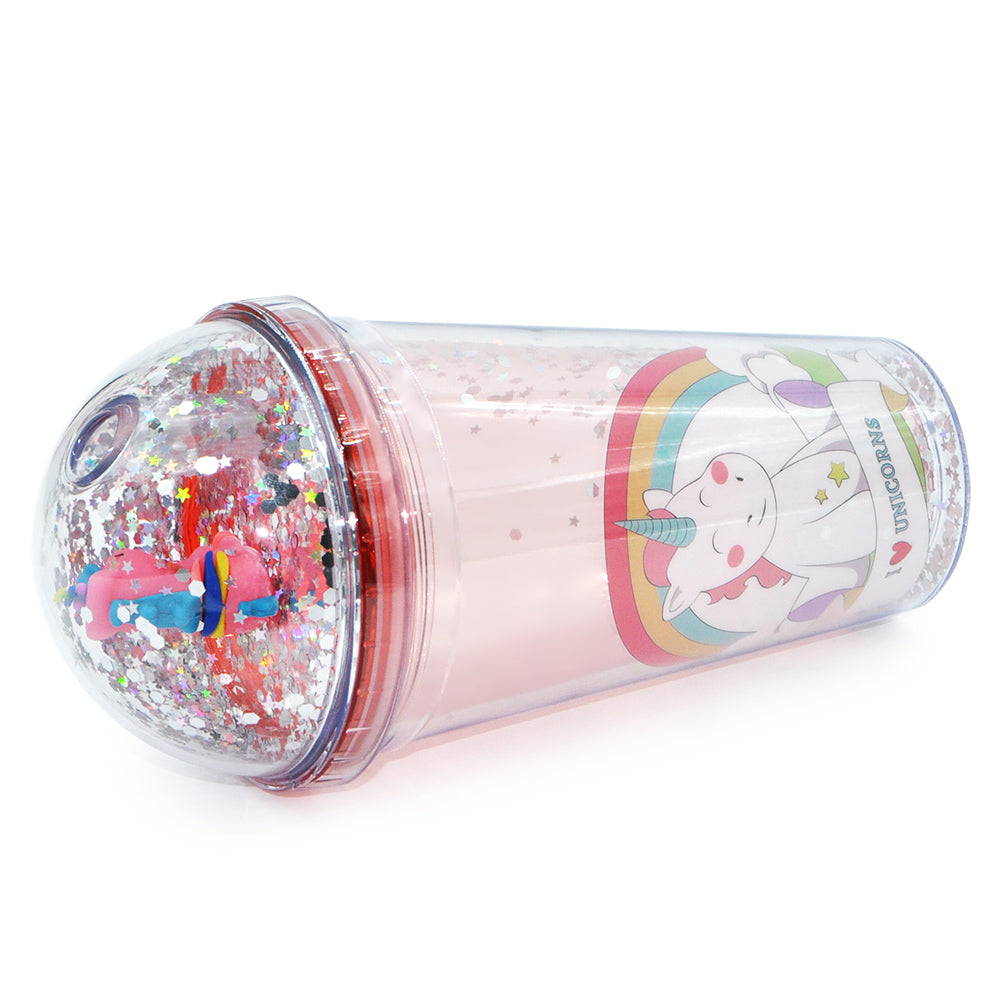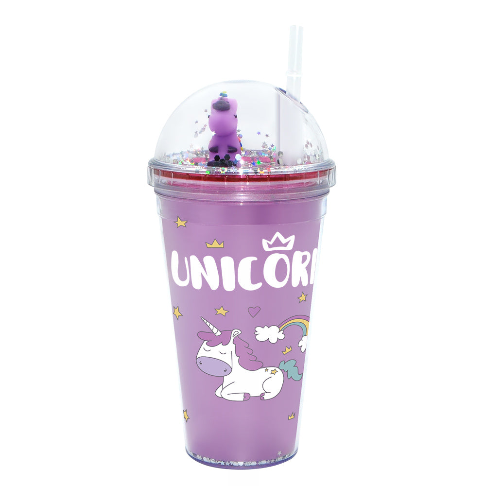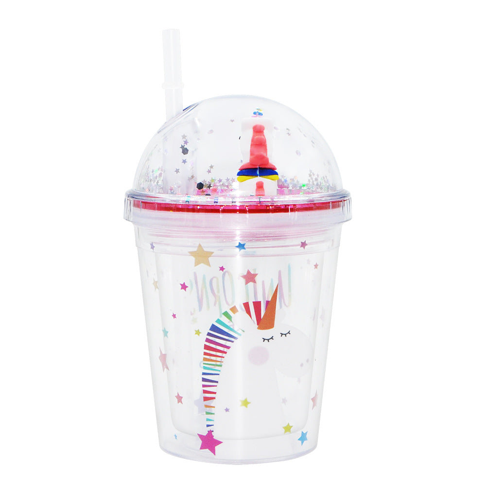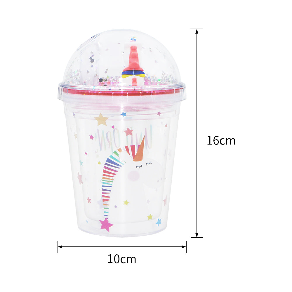 SP14- ice cream unicorn plastic cups double-layer cute cartoon girl kid sipper colorful glitter water bottle