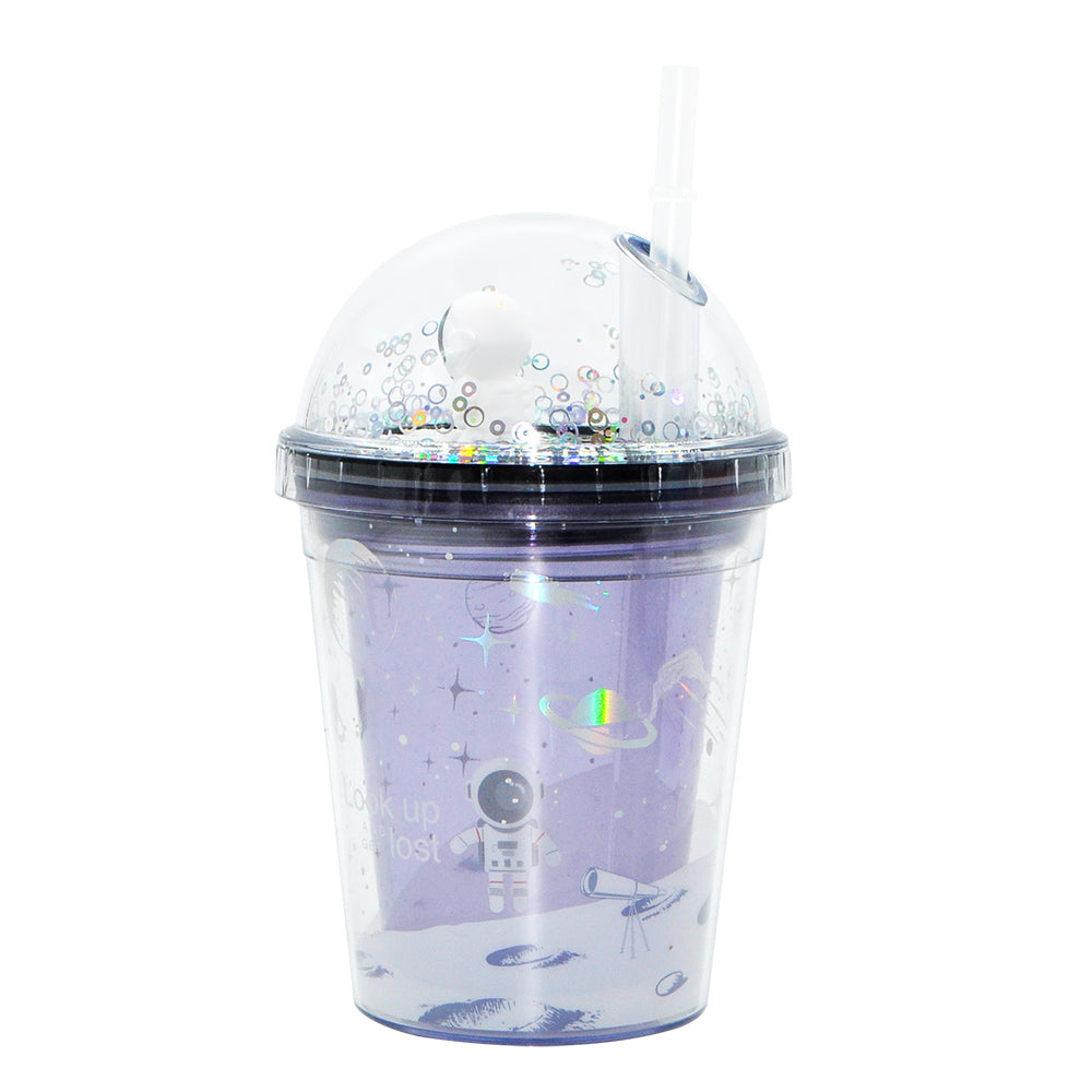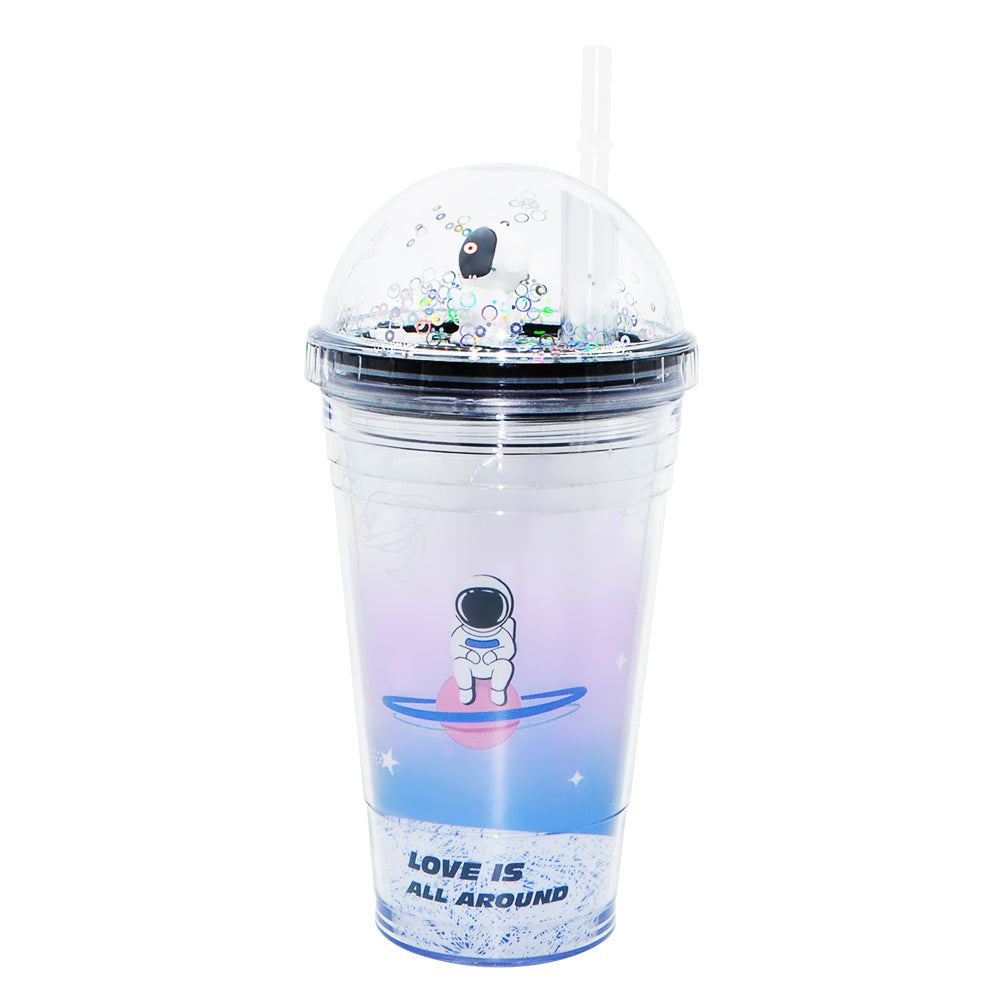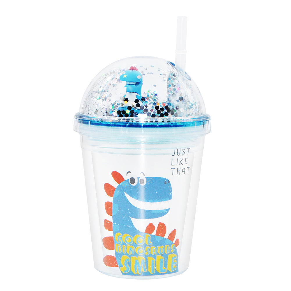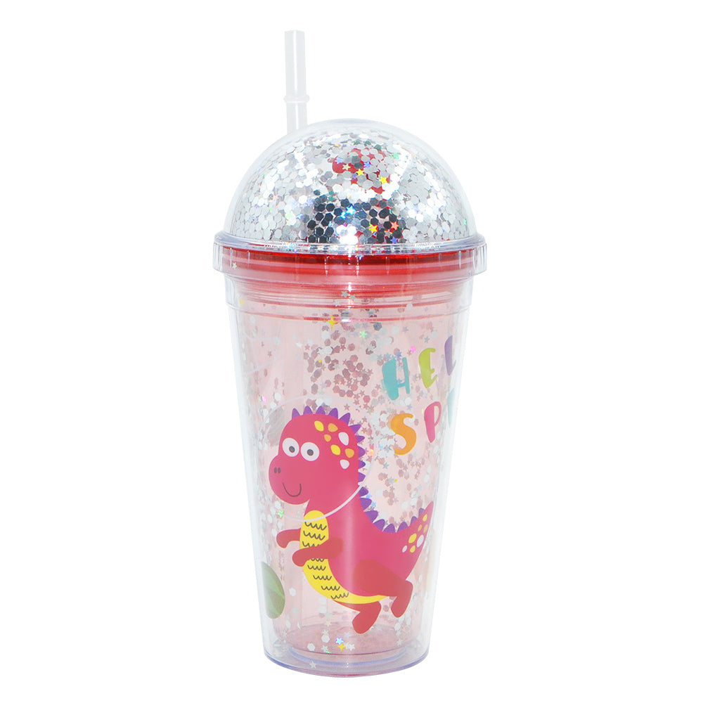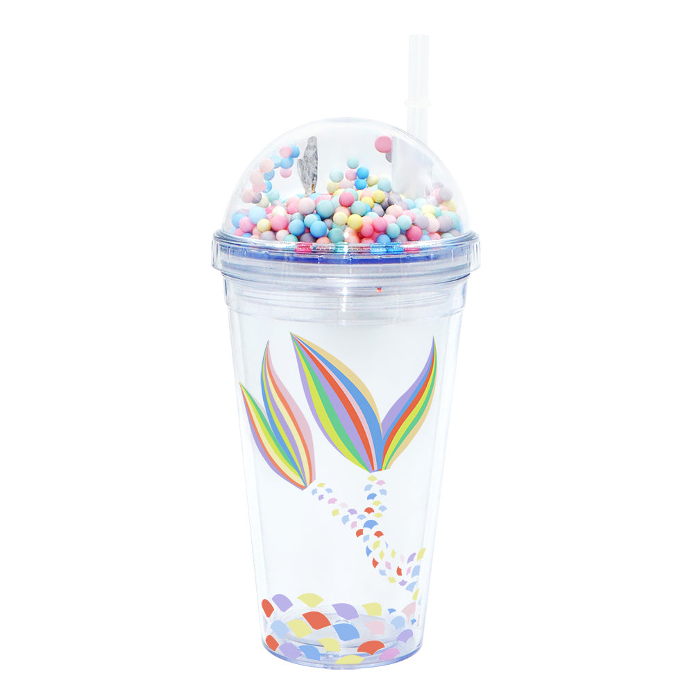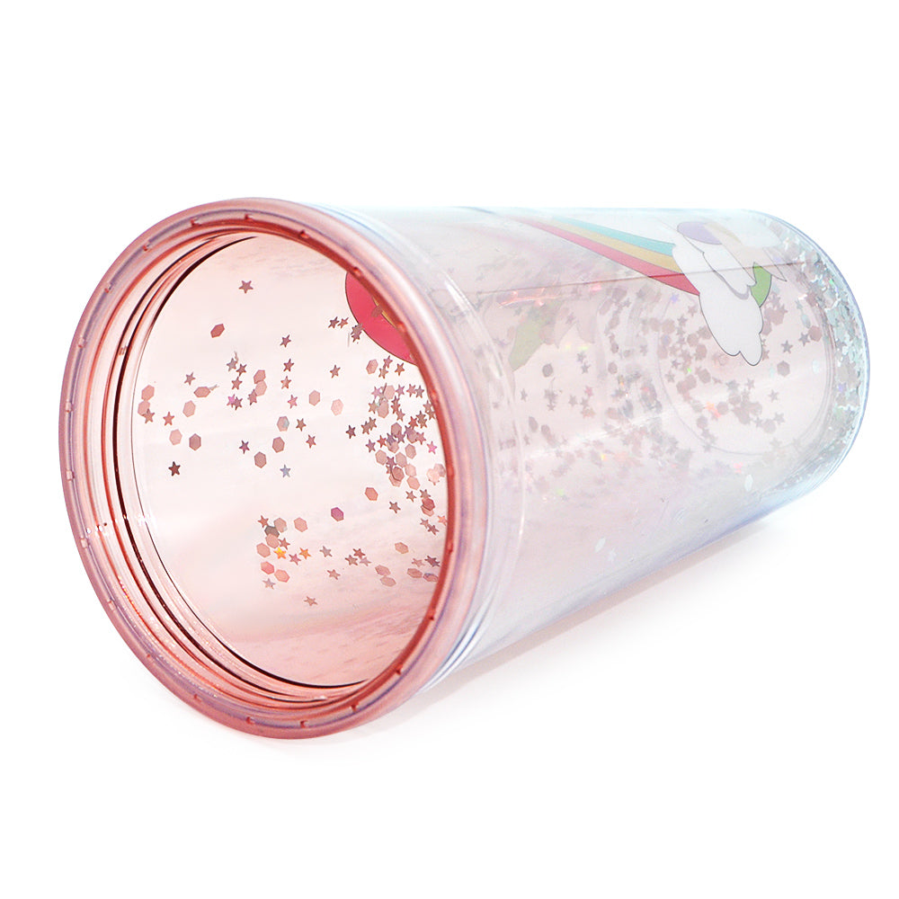SP14- ice cream unicorn plastic cups double-layer cute cartoon girl kid sipper colorful glitter water bottle