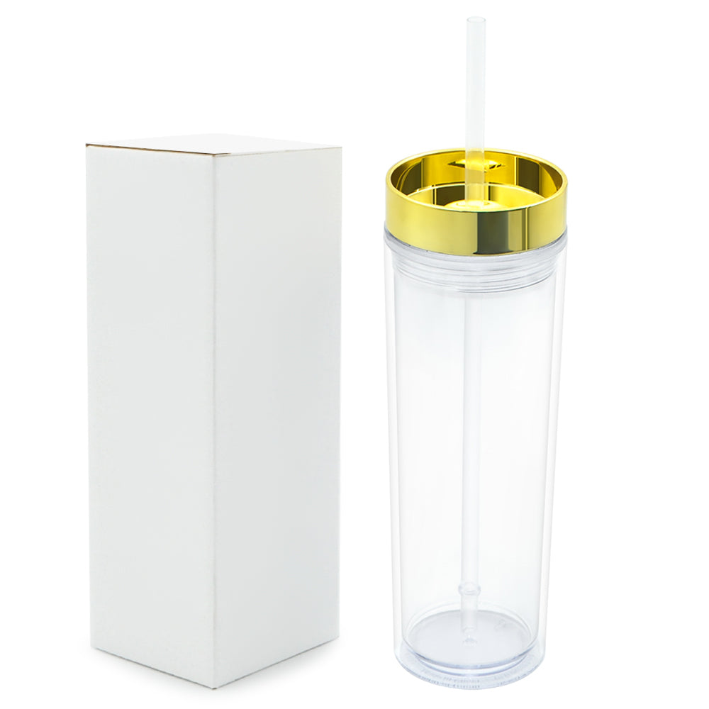 SP23-Acrylic Skinny Reusable Insulated coffee Tumbler Cup With Lids and Straw