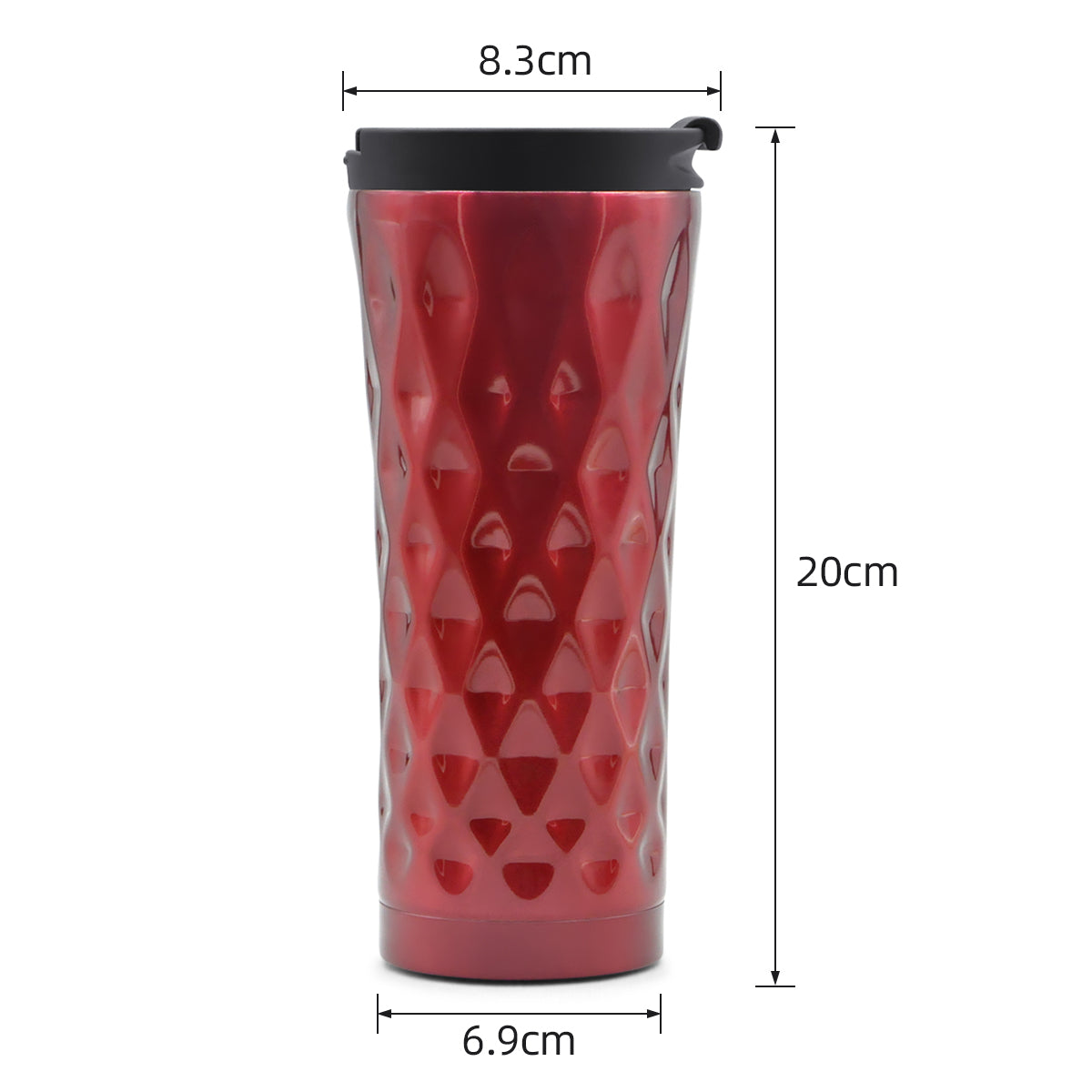 AM8-Stainless Steel 500ML Metal Travel Mug With Lid Rhombic Coffee Cups Tumbler