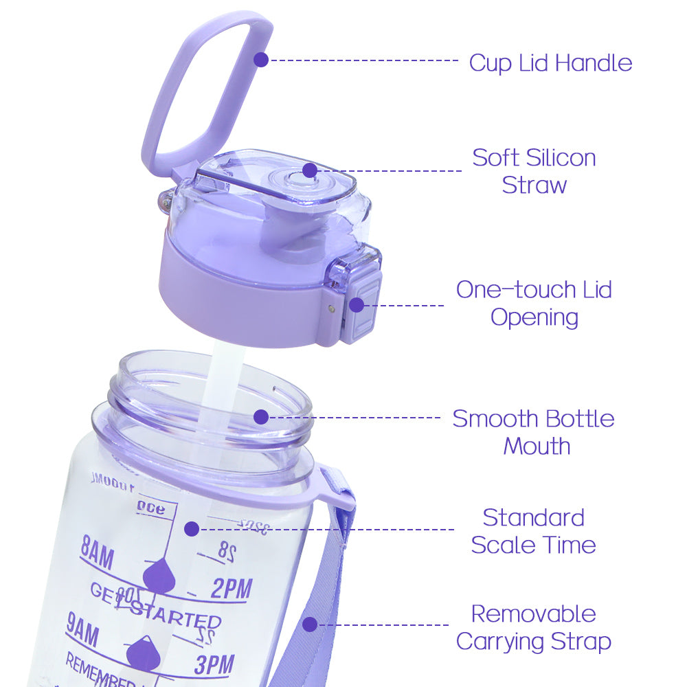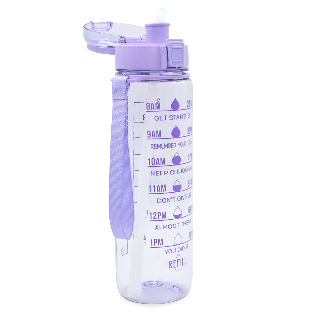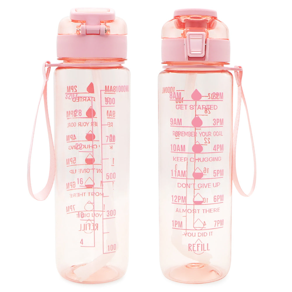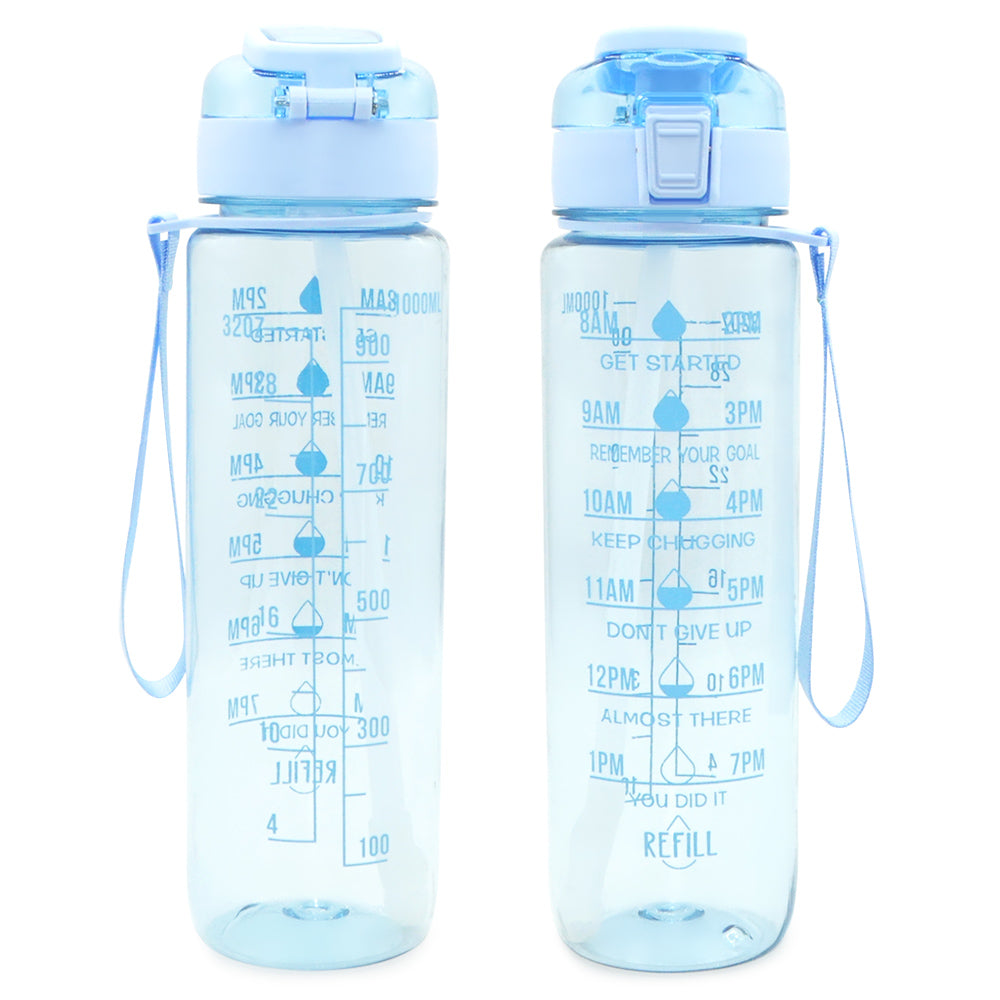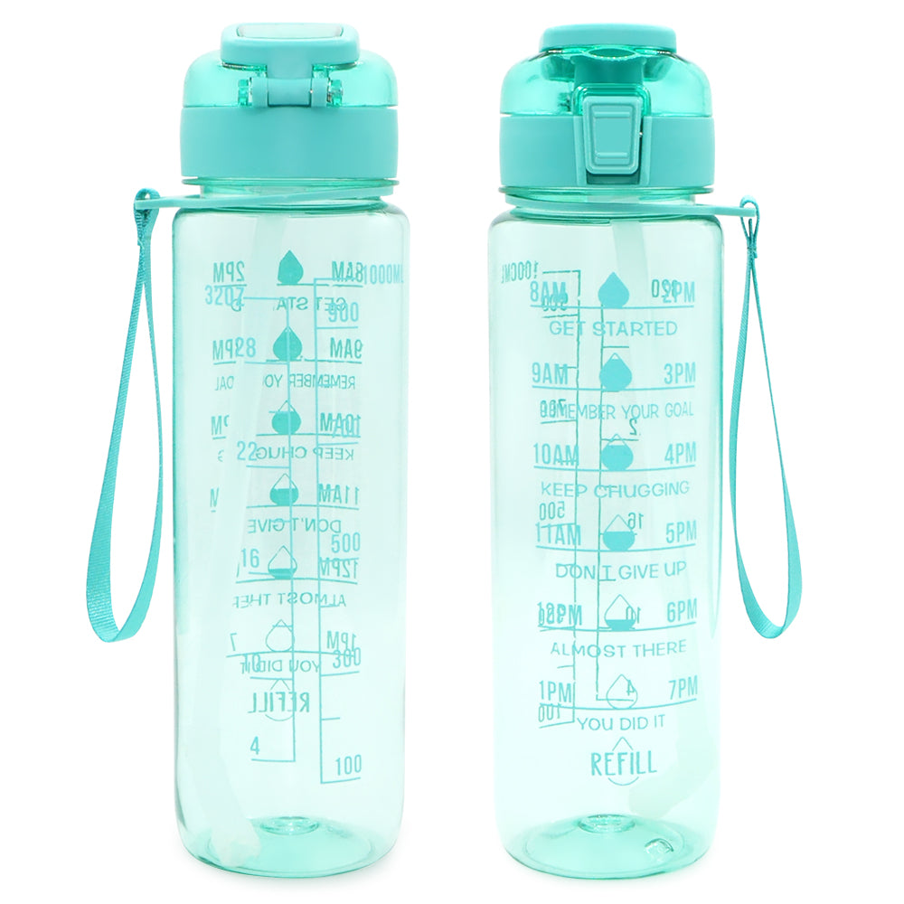 T1-5-32 Ounces 1 Liter Leakproof Motivational Plastic Water Bottle With Time Marker Stamp And Handle