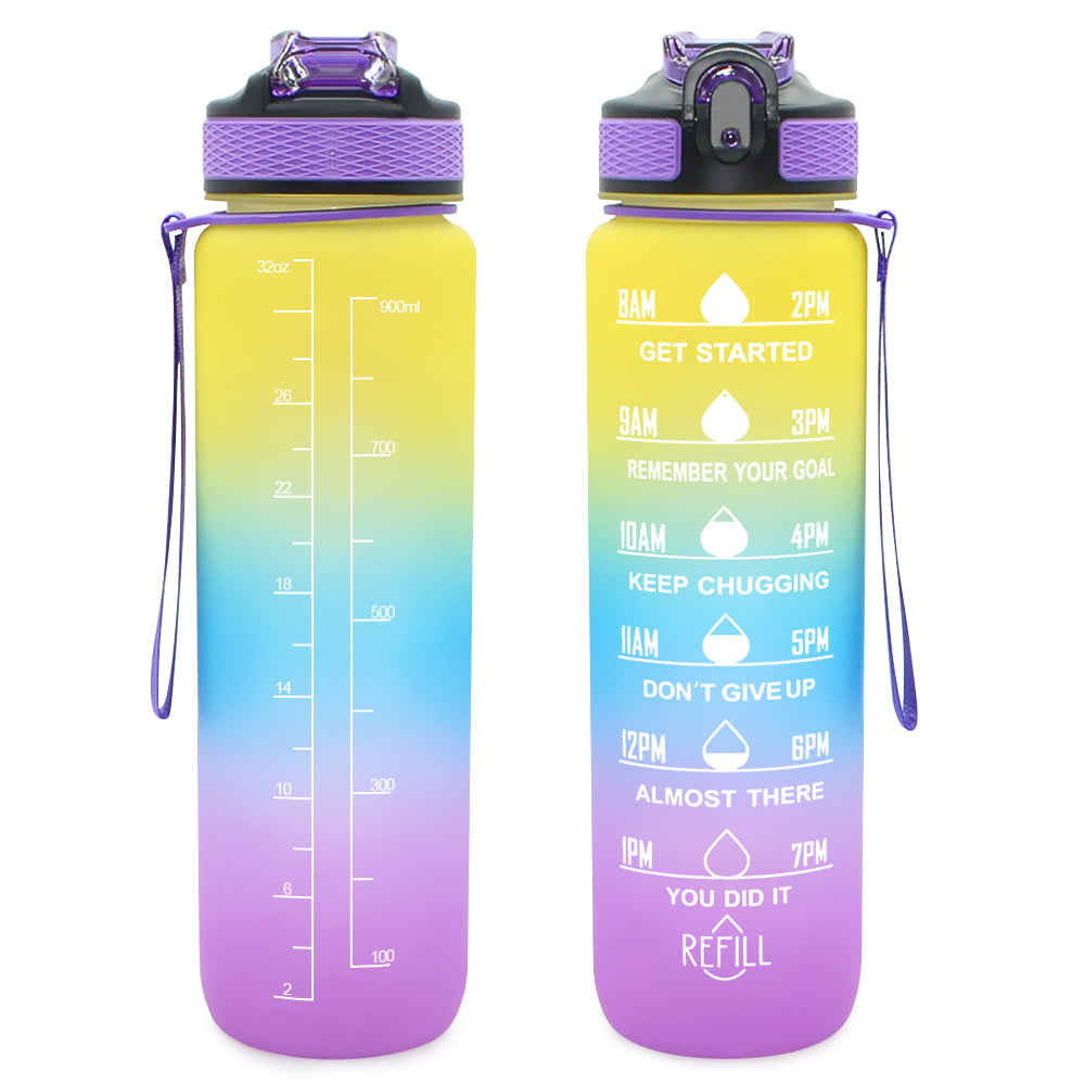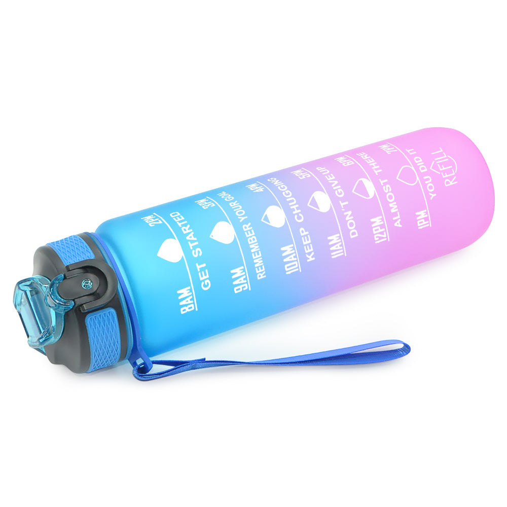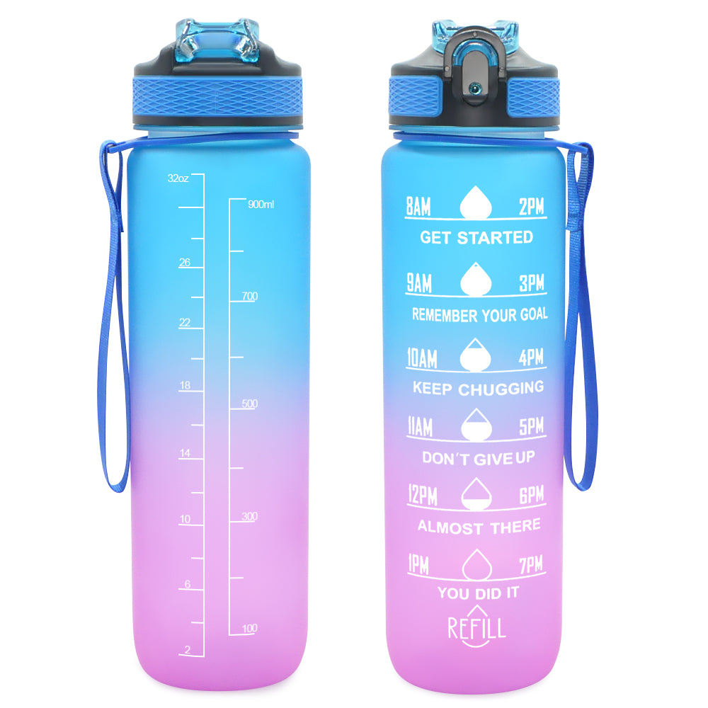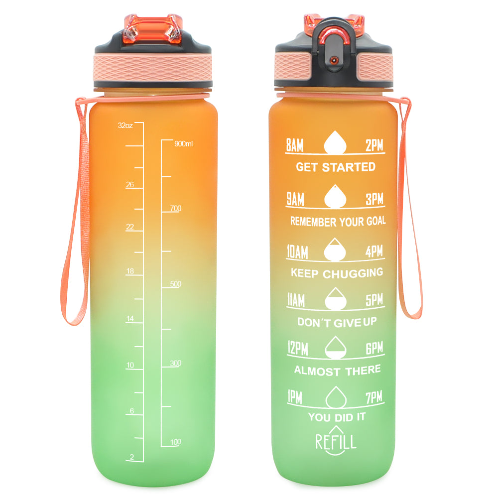 T3- 32oz 1000ML Gradient Gym Bottles Large Water Bottle With Motivational Time Marker