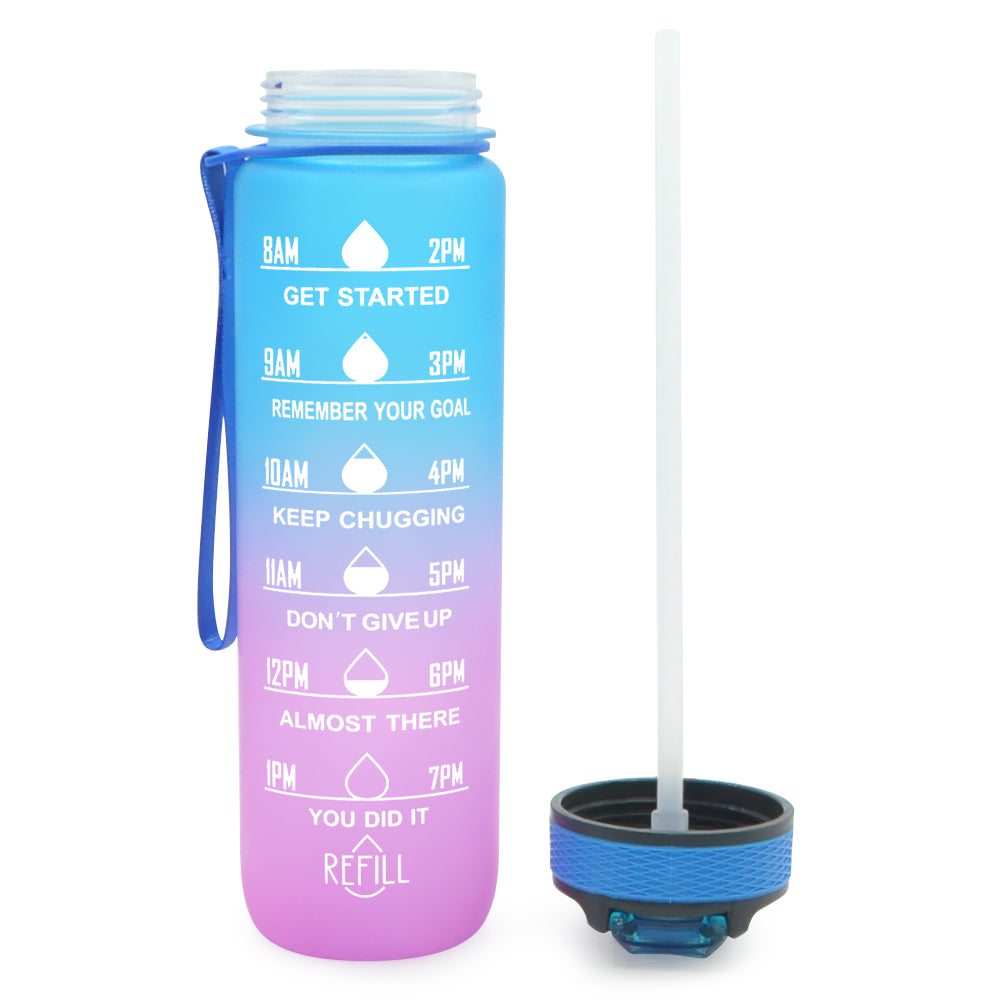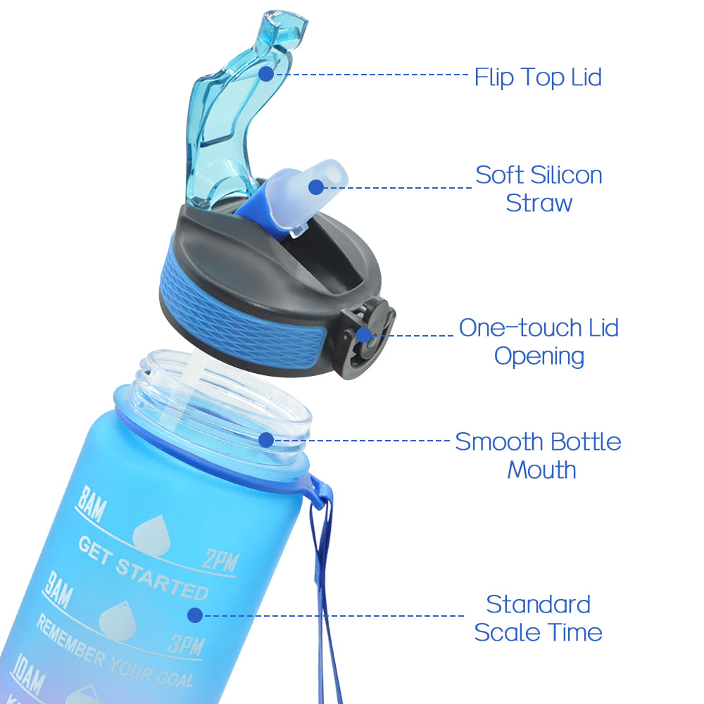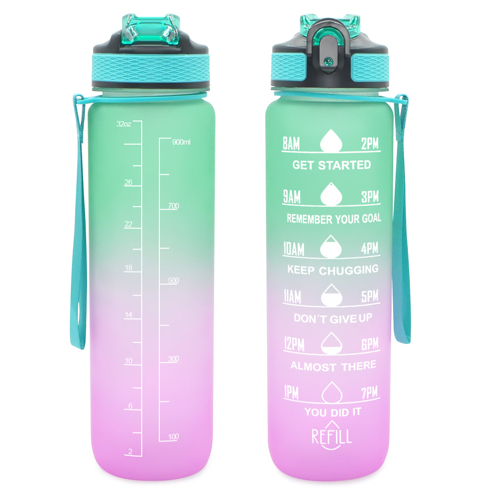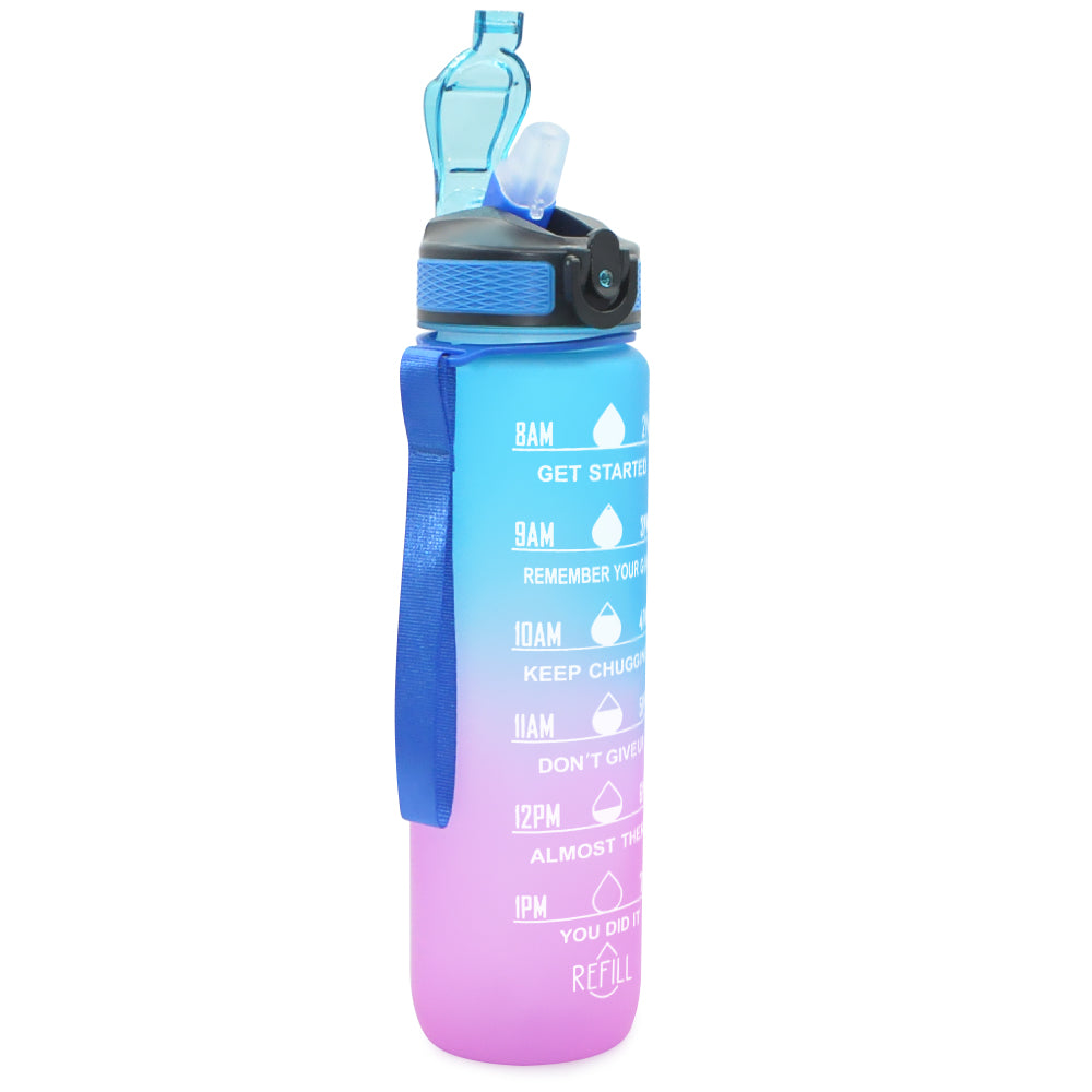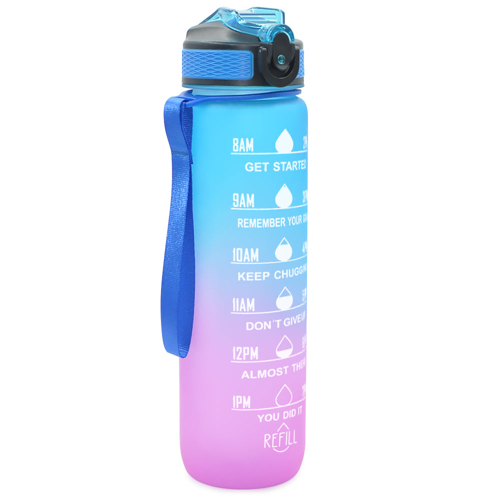 T3- 32oz 1000ML Gradient Gym Bottles Large Water Bottle With Motivational Time Marker
