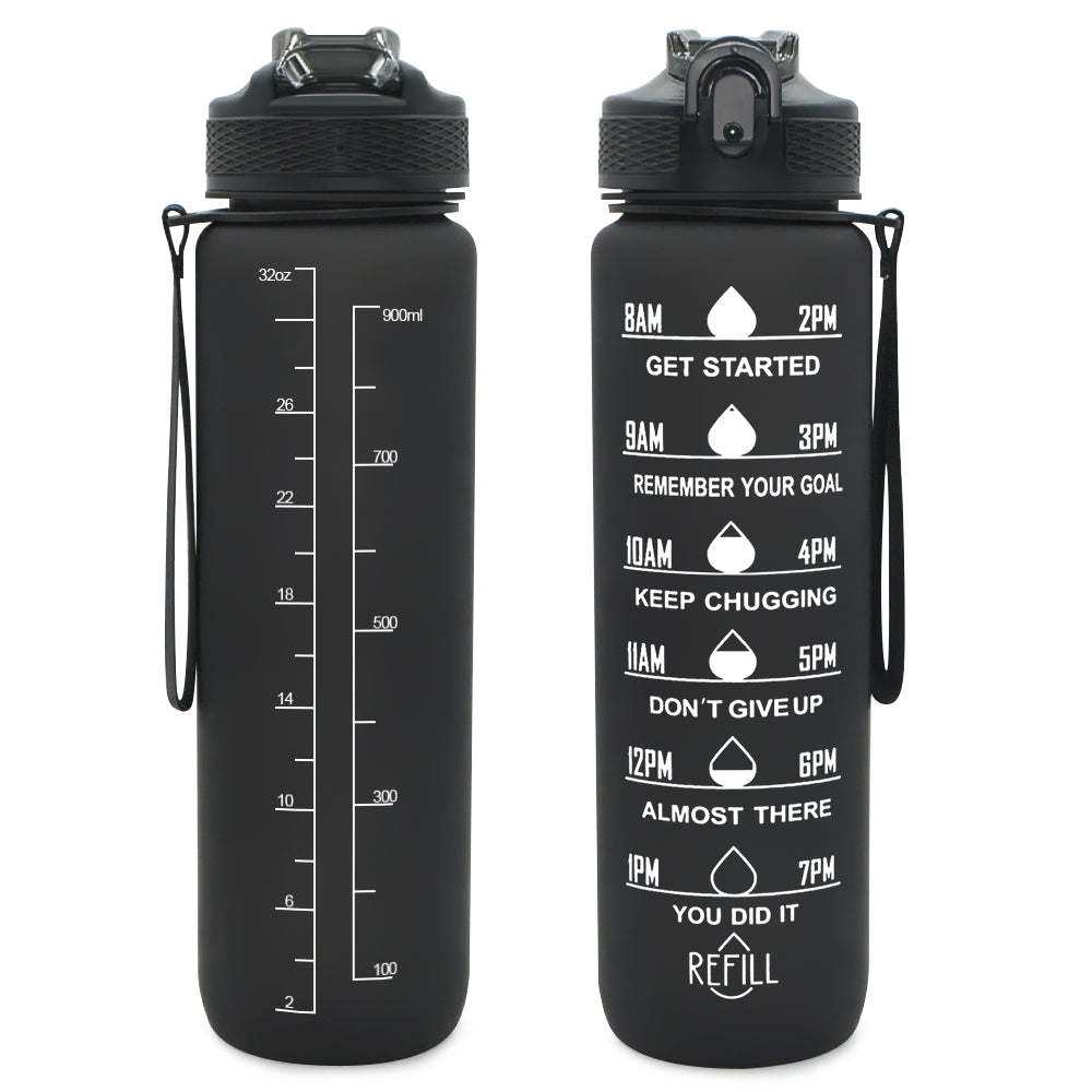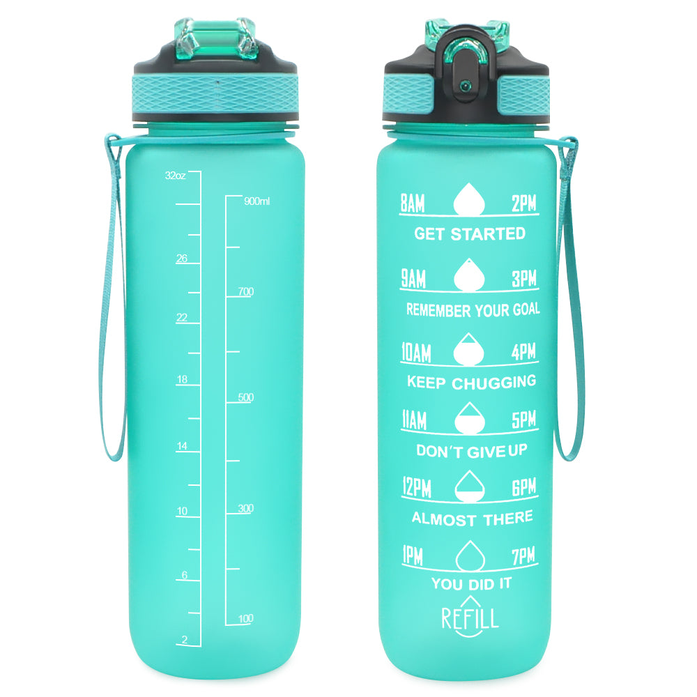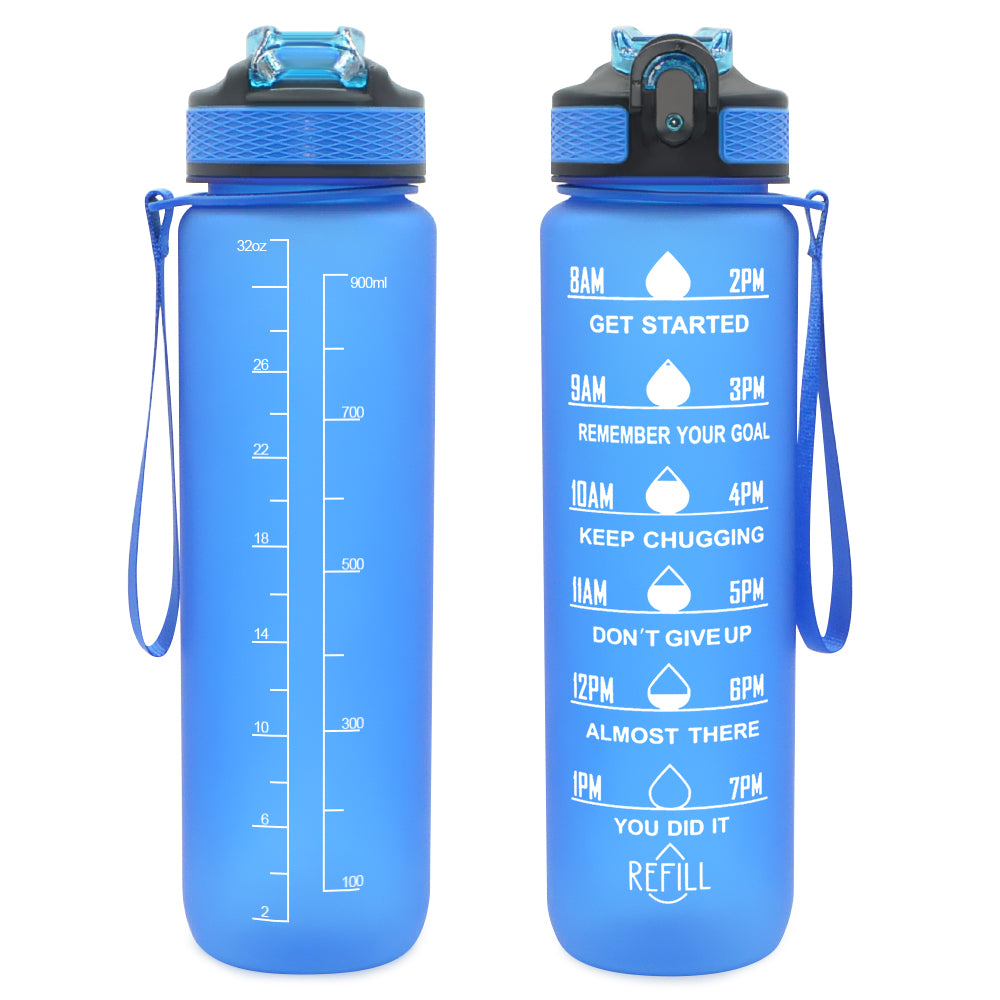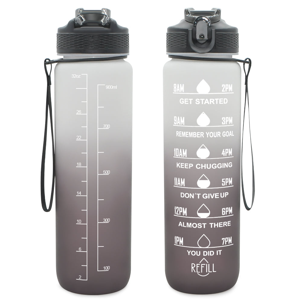 T3- 32oz 1000ML Gradient Gym Bottles Large Water Bottle With Motivational Time Marker