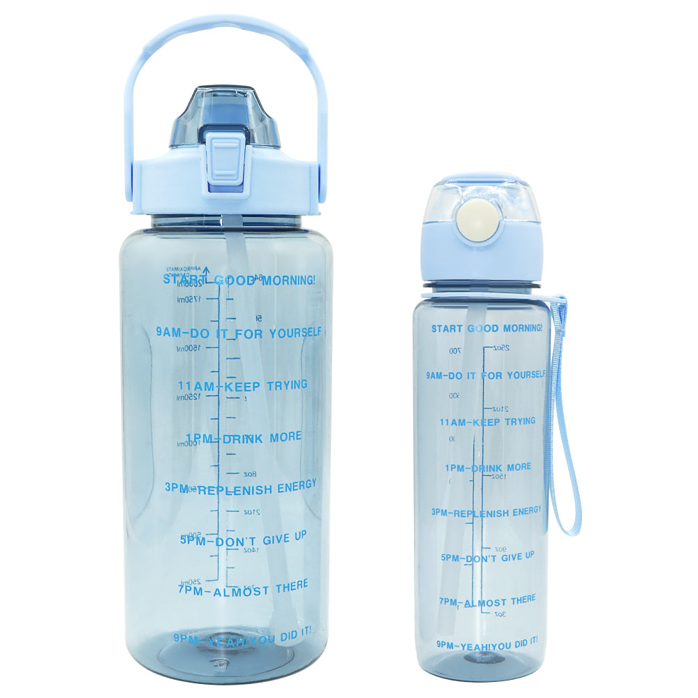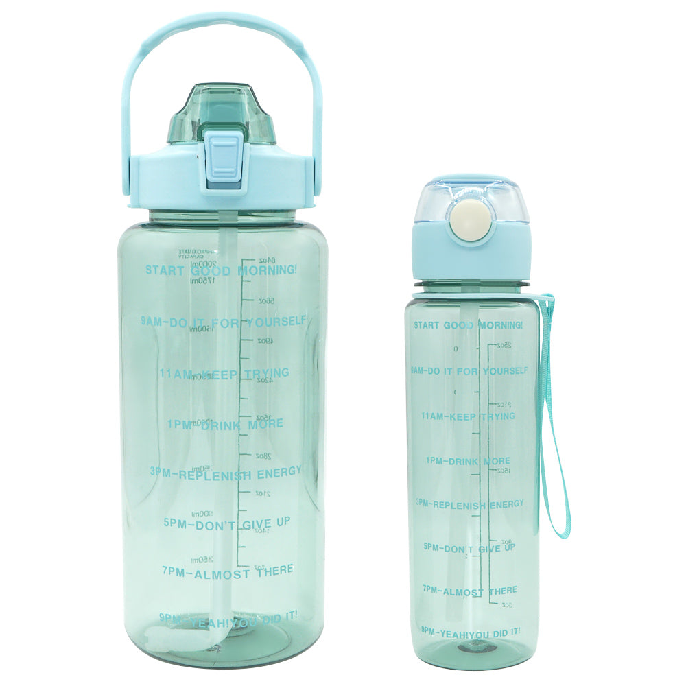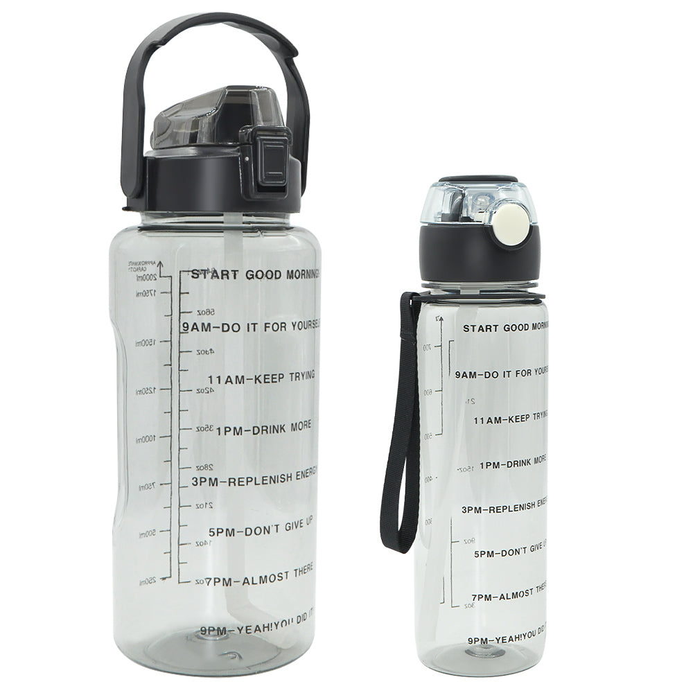 T5P- BPA Free Fitness Gym Sports Clear Plastic Motivational Water Bottle Set With Handle