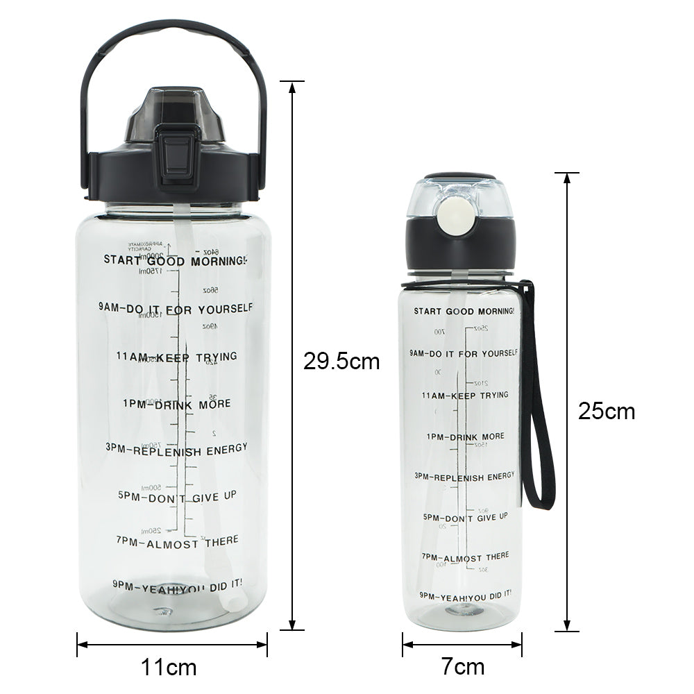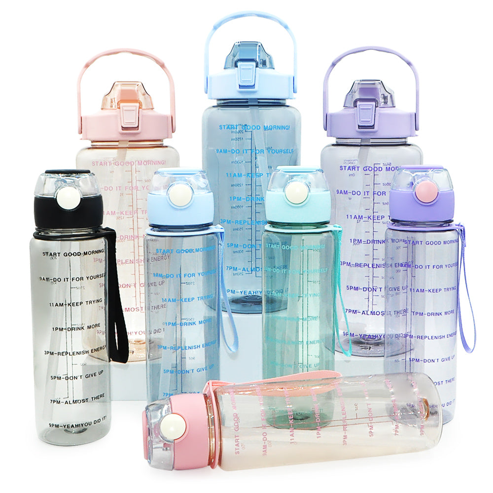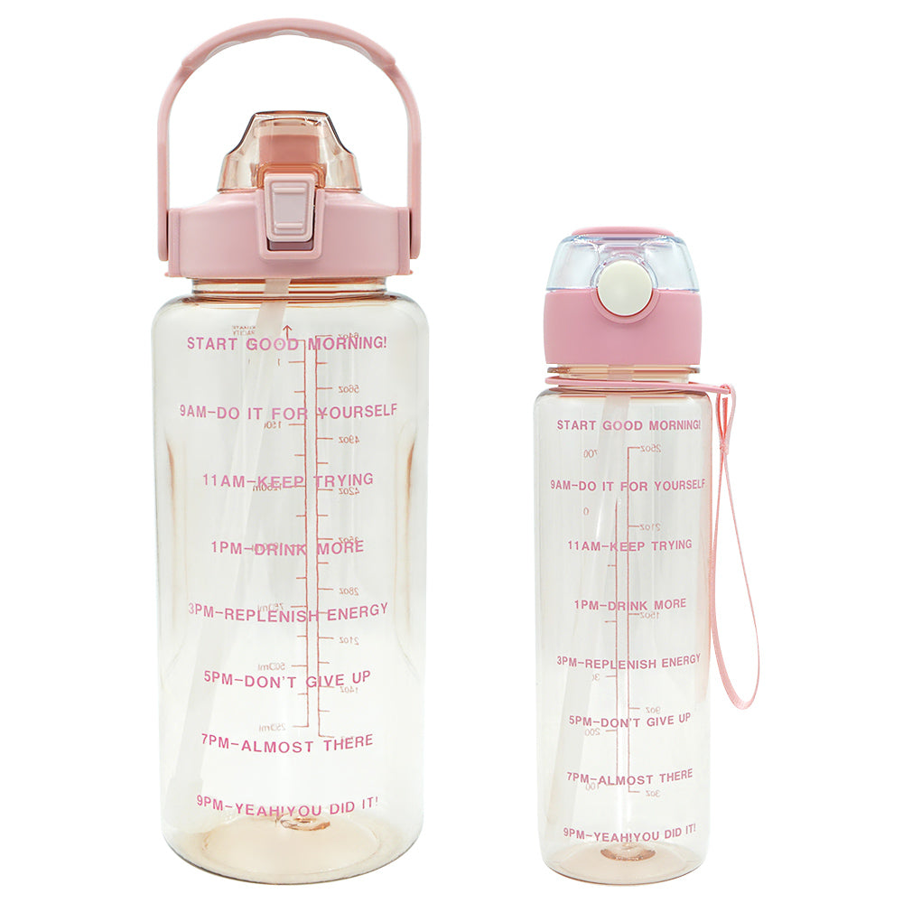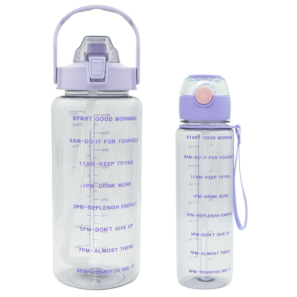 T5P- BPA Free Fitness Gym Sports Clear Plastic Motivational Water Bottle Set With Handle