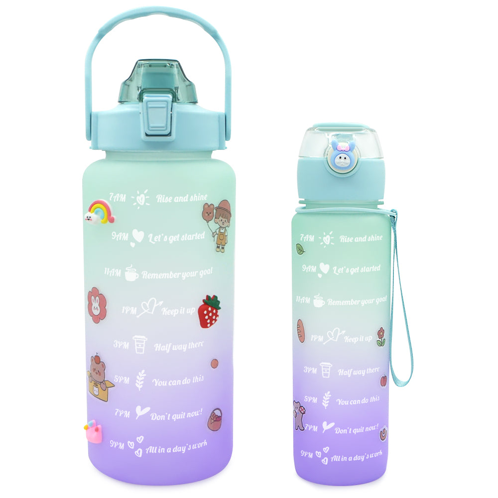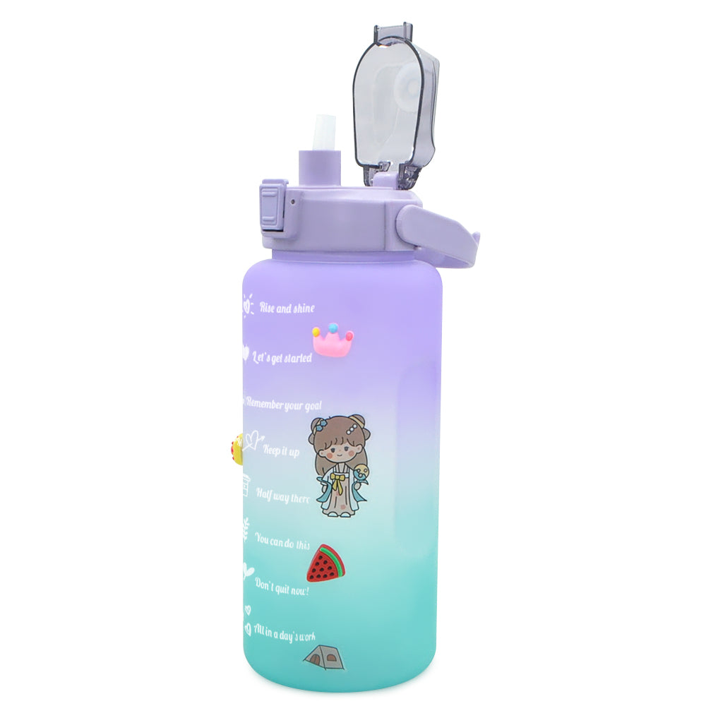 T6P-2000ML 2 Litre Motivational TWO Water Bottle Reusable BPA Free GYM Water Jug With Time Marker Reminder